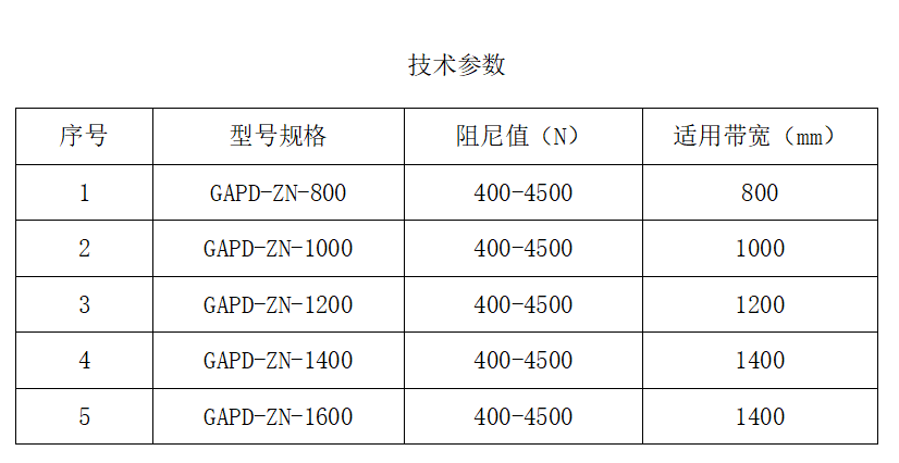 装置在皮带输送机运行状态下阻尼装置与皮带间距调节到 2-10mm,不会损伤皮带;当运行中的皮带输送机因故停车时,控制系统会提供给阻尼装置一个停止信号,控制器会驱动阻尼装置的电磁阀打开,使气缸托起阻尼板和皮带严密接触,瞬间起到阻尼作用。